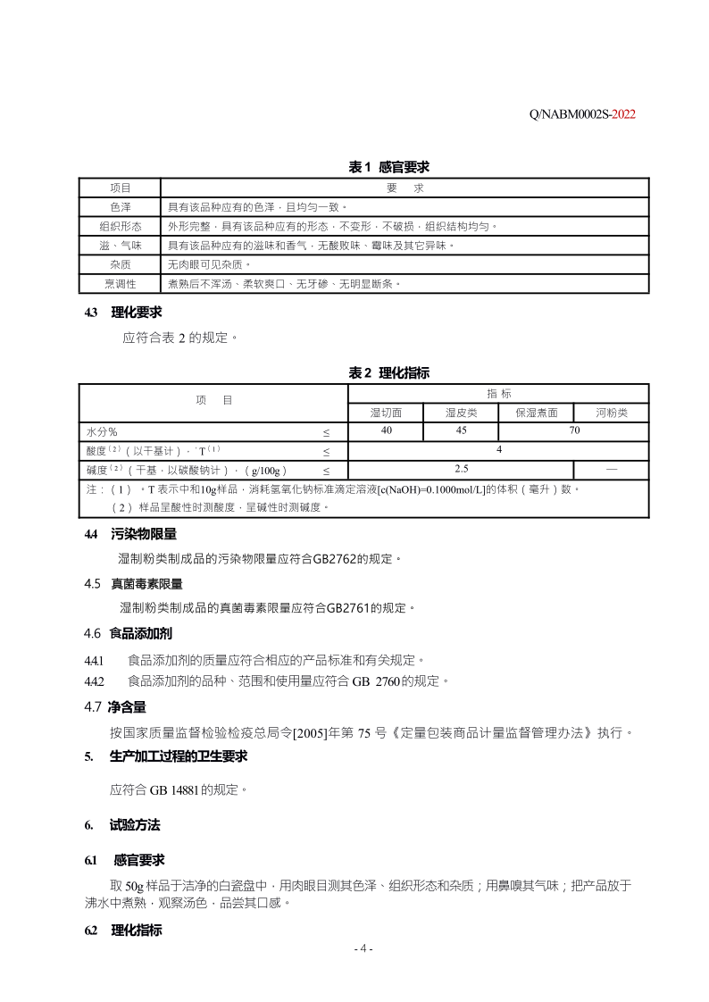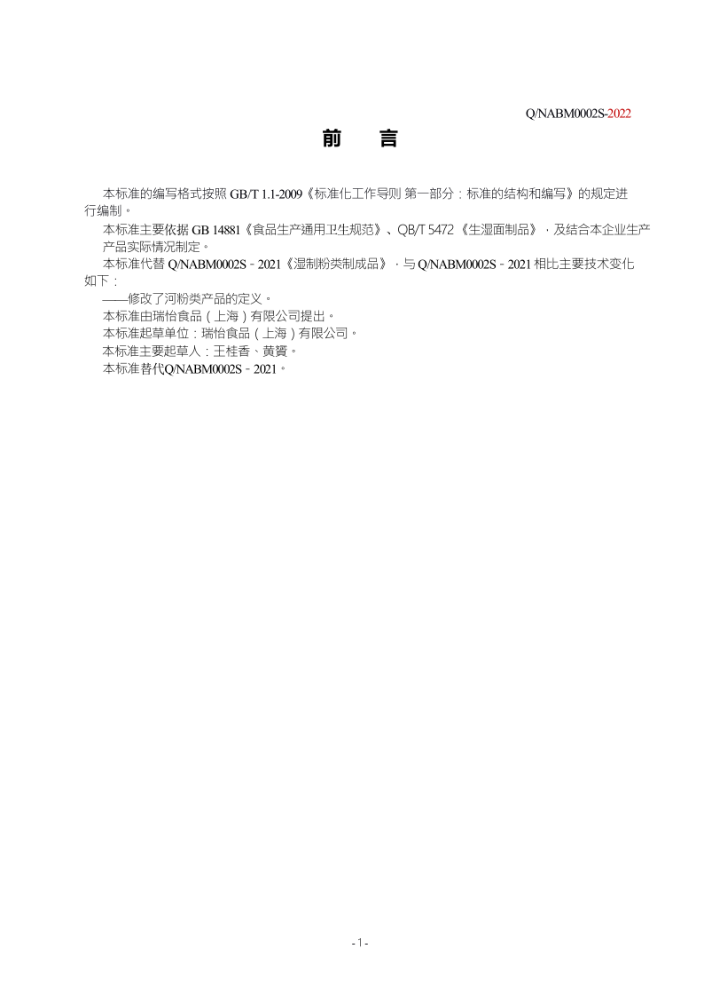 上海市食品安全企業標準濕制粉類制成品