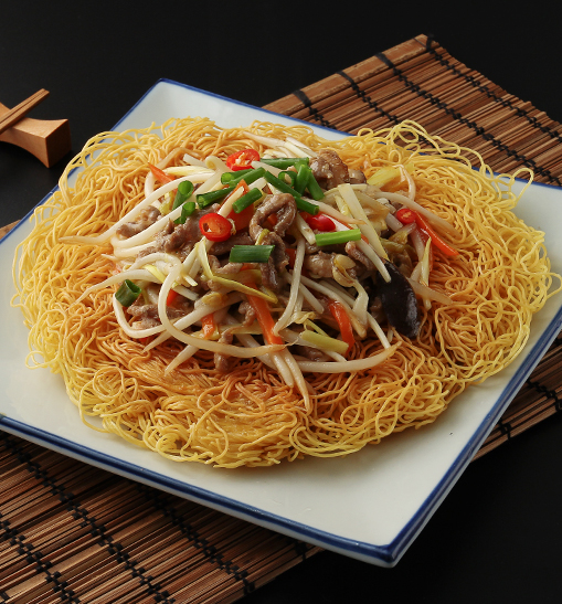 脆脆的面配上清爽銀芽和嫩滑的肉絲讓人吃不停口。